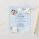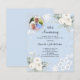 Por un elegante y romántico 60 aniversario boda. Un fondo azul claro decorado con flores blancas, rosas, diamantes falsos y encajes blancos. Personaliza y agrega tu foto, nombres y detalles. 1 hoja = 1 borde impreso de invitación al borde.