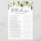 ¿Quién conoce mejor a la mamá? ¡Responda a estas preguntas para averiguarlo! | Añada esta divertida y divertida tarjeta de juego para la ducha de bebé a su evento. Esta tarjeta de personalizable "Who Know The Mom Best" incluye ilustraciones acuarelas de flores blancas y vegetación. Personalice agregando sus preguntas. Esta tarjeta de juego blanca con flores para bebés es perfecta para duchas de invierno y primavera y fiestas para bebés.