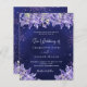 De fondo azul marino, el color azul es desigual. Decorada con bordes de lavanda y polvo falso purpurina de color. Personalice y agregue sus nombres y detalles. 1 hoja = 1 borde impreso de invitación al borde.