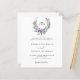Fondo blanco. Una corona floral de flores de lavanda y de eucalipto acuático. Personalice y agregue sus iniciales, nombres y detalles del monograma. Texto negro. Atrás: agregue la URL de su sitio web boda al código QR para obtener más detalles y/o RSVP. 1 hoja = 1 borde impreso de invitación al borde.