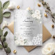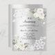 Por un elegante y romántico décimo aniversario boda. Un fondo falso plateado decorado con flores blancas, rosas y encaje blanco. Personalice y agregue sus nombres y detalles. 1 hoja = 1 borde impreso de invitación al borde.
