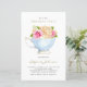 ¡Únete a nosotros para un fiesta de té! Invite a su familia y amigos a su evento con esta invitación para la fiesta de cumpleaños del personalizable. Cuenta con un ilustracion acuático de una taza de té con un ramo de rosas. Personalice agregando sus detalles. Esta invitación floral de cumpleaños es perfecta para eventos de primavera y jardín.