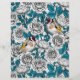 Lámina Flores de rosa blanca y pájaros dorados