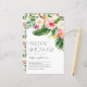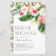 Invite a los huéspedes a su evento con esta invitación a la oficina de personalizable con ducha de novia. Cuenta con ilustraciones acuáticos de hojas de palma, hojas de plátano, hibiscos, plumeria y otras plantas tropicales. Personalice esta invitación a la ducha de novia tropical agregando nombre, hora, fecha y otros detalles del evento. Esta ducha de novia verde es perfecta para las duchas de verano.
