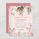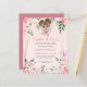 Fiesta de cumpleaños de hadas de personalizable, invitación de papel asequible, con un lindo hadas con bollos y un borde de bonito de flores, en tonos rosa rosa rubor, melocotón, rosa polvoriento rosa con un borde geométrico de oro y mariposas.