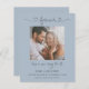 Budget Forever Tiene Un Bonito Anillo A La Foto Invitación De Compromiso Azul Polvoriento. Un precio económico menor 4,5" x 5,6" alternativa. Disponible en un ALMACENAMIENTO DE TARJETAS SEMI-GLOSS de 110 lb que es la opción predeterminada (más grueso para las invitaciones), O UN ALMACENAMIENTO DE PAPELES DELGADOS SATIN FINISH DE 80 lb (ideal para los gabinetes). Un diseño moderno para anunciar sus noticias emocionantes, con un elegante estilo de guión para Forever con el corazón y el anillo de compromiso y tiene un anillo a él en el mismo guión bajo su foto. Reemplace la imagen de ejemplo con su foto que está en formato cuadrado y el resto del texto que puede personalizar fácilmente.