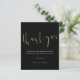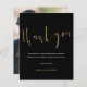 Fotografía de caligrafía Boda negro de oro Gracias. Un precio económico menor 4,5" x 5,6" alternativa. Disponible en un ALMACENAMIENTO DE TARJETAS SEMI-GLOSS de 110 lb que es la opción predeterminada (más grueso para las invitaciones), O UN ALMACENAMIENTO DE PAPELES DELGADOS SATIN FINISH DE 80 lb (ideal para los gabinetes). Los sobres son un extra opcional y son algo más grandes que el tamaño de la tarjeta. Un diseño moderno de tipografía con un elegante guión estilo escritura a mano para Gracias en oro un fondo negro clásico. En la parte posterior, reemplace la fotografía de muestra con su favorita del día como un regalo para sus huéspedes. Personaliza fácilmente el resto del texto con tu mensaje y nombres.