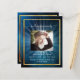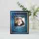 Un elegante programa de 2 páginas. Un cielo azul oscuro como fondo, un marco dorado falso y espacio para una foto. Vigas de luz detrás de la foto. Personalice y agregue el nombre, las fechas y el texto.