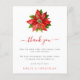 Foto de Poinsettia Boda de Navidad Gracias a un precio económico alternativo de 4.5" x 5.6". Disponible en un ALMACENAMIENTO DE TARJETAS SEMI GLOSS 110 lb que es la opción predeterminada (más grueso para las invitaciones), O UN SATIN FINISH DE PAPEL LADRÓN DE 80 lb (ideal para los gabinetes). Los sobres son un extra opcional y son algo más grandes que el tamaño de la tarjeta. Personaliza fácilmente el texto a tus propios detalles. En la parte posterior, el intercambio de tu foto favorita del día de tu boda de orientación vertical es un placer para tus invitados.