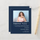 Una alternativa de valor por dinero BUDGET en un tamaño menor de 4,5 x 5,6" de peso semibrillante de 110 libras, que es de espesor similar al de una postal (sin embargo, no es adecuado para usar como postal). POR FAVOR, TENGA EN CUENTA QUE HAY UNA por hoja. Fotografía simple de presupuesto 2022 Graduación Azul de la Marina. Diga gracias después de sus celebraciones de grado con este minimalista estilo contemporáneo con su foto. Personalice fácilmente el texto y reemplace la foto de la plantilla con la suya propia.