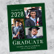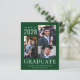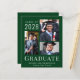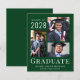Invitación asequible de graduación verde con 3 fotos de collage y "Graduado" en elegante tipografía blanca moderna. Añade el nombre de tu graduado, el año de clase y la escuela o universidad.
