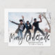 Saludos elegantes y sencillos de Navidad. La elegante caligrafía navideña Merry está en negro, con una foto. Personalizar con su información única.