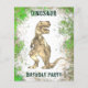 Una invitación a una fiesta de dino salpicado de selva jurásica para el niño que ama los dinosaurios. Estos Rex invitan a los fans de Dino a una divertida fiesta de cumpleaños. Color del agua marrón y verde con fondo de salpicadura de Tyrannosaurus rex rugiendo. Personalice este diseño de Tyrannosaurus rex con una foto, el número de cumpleaños y los detalles del fiesta y todos se preparan para un divertido cumpleaños de dinosaurios con temática de dino. Todas las especies de dinosaurios son bienvenidas. Ilustracion de arte original de Catherine Sweetman