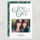 Tarjetas de fotos de vacaciones de Navidades joyful de emmeralda verde esmeralda con una tipografía de moda y un patrón de invierno festivo en un verde bosque de invierno elegante. **Nuestro documento de PRESUPUESTO es más pequeño y delicado, pero todavía hermoso!** Para una comparación de tipos de papel, por favor vea nuestro video aquí: https://youtu.be/G0F9Am5HPD4 Si necesita ayuda o artículos coincidentes, por favor contáctenos en cedarandstring@gmail.com.