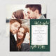 Con delicadas hojas de vegetación en acuarela y un marco dorado sobre un fondo verde esmeralda, esta elegante invitación de boda botánica económica puede ser personalizada con tus fotos especiales y detalles del día de tu boda. Diseñado por Thisisnotme©