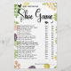 Nuevo juego de zapatos para Boda de mercado | Hillary Couple's Prueba para la Ducha de Novias Prepárate para unas risas serias con nuestro juego de zapatos Boda "Fresh Off The Market"! Este juego increíblemente popular y entretenido es una adición perfecta a tu mercado, jardín o ducha de novia de temática rústica (o incluso a la recepción de bodas). Con nuestros productos selectos a mano y las deliciosas flores de acuarela, la carta de caza o el cartel complacen su fresca estética natural. Así es como se juega el juego clásico: la pareja se sienta de espaldas, cada uno llevando uno de sus zapatos y uno de los de su pareja. Un presentador lee preguntas (como "¿Quién es un mejor cocinero?", "¿Quién hizo la primera movida?", "¿Quién pasa más tiempo en los medios sociales?"). Sin verse, la pareja responde sosteniendo el zapato de la persona que encaja en la descripción. Siempre es una manera hilarante de ver sus perspectivas y entretener a sus invitados con sus reacciones. La tarjeta o cartel "Juego de zapatos Bodas" proporciona una lista de preguntas divertidas y atractivas listas para ser hechas. Es un juego fácil de facilitar que aporta energía y muchas oportunidades de fotos a tu evento. Coordine este animado juego a la perfección con otros artículos de nuestra colección "Fresh Off The Market", como invitaciones, otras tarjetas de juego y carteles, para un tema de eventos bellamente cohesivo y entretenido. Personalizar fácilmente la tarjeta de juego o firma agregando los nombres de la pareja, la fecha del evento, o posiblemente intercambiando algunas preguntas para hacerlas más personales (dependiendo de las características de la plantilla de Zazzle). Disponible impreso en cartuchos premium o como un fuerte signo. Haga clic en "Personalizar Now" para personalizar su tarjeta o signo de juego de zapatos de Boda de Fresh Off the Market y añadir un revuelo de risa y diversión a su ducha de novia o celebración de bodas. Juego de zapatos de boda, juego de zapatos con ducha de novia, juego de zapatos recién salida de mercado, juego de boda de mercado para agricultores, juego de boda rústico, juego de fiestas de tema del jardín, juego de zapatos para parejas, juego de novias divertirse divertidos, juego de zapatos divertidos, juego de recepción de bodas