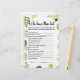 Fresh Off the Market quien los conoce mejor juego | Trivia Bridal Shower Activity Pone a prueba el conocimiento de la pareja feliz con nuestro "Fresh Off The Market" quien los conoce mejor! Este divertido juego es una adición perfecta a su mercado agrícola, jardín o ducha de novia de temática rústica. Con nuestros productos artesanales y deliciosas flores de acuarela, se complementa con su estética fresca y natural. Aquí está cómo jugar: Antes de la ducha, cree una lista de preguntas sobre la novia y el novio/pareja (por ejemplo, "¿Dónde se encontraron por primera vez?", "¿Quién dijo primero 'Te amo'?", "¿Cuál es su actividad de fin de semana favorita?", "¿Cuál es el talento oculto del novio?"). En la ducha, los clientes rellenan esta tarjeta de juego con sus respuestas para ver qué tan bien conocen a la pareja como unidad. ¡El invitado con las respuestas más correctas gana un premio! Es una manera fantástica de celebrar juntos el viaje de la pareja y revelar hechos divertidos sobre ellos. La tarjeta de juego "Who Knows Them Best" ofrece una lista clara de preguntas y un espacio para que los invitados escriban sus respuestas en un diseño temático atractivo. Es una actividad fácil de distribuir en las mesas y anima a los invitados a pensar en ambos individuos en la relación. Coordine este divertido juego de adivinanzas a la perfección con otros artículos de nuestra colección "Fresh Off The Market", como invitaciones, otras tarjetas de juego y carteles publicitarios, para un tema de evento bellamente cohesivo y entretenido. Personalizar fácilmente la tarjeta de juego agregando los nombres de la pareja, la fecha del evento y adaptando las preguntas a ser específicas e interesantes para la novia y el novio (dependiendo de las características de la plantilla de Zazzle). Disponible impreso en material de cartón de calidad superior o como una conveniente descarga digital de impresión en casa. Haga clic en "Personalizar Now" para personalizar sus tarjetas de juego Fresh Off the Market Who Knows Best Game y añadir un toque de trivialidad y diversión a su ducha de novias, celebrando el vínculo único de la pareja! quién las conoce mejor juego, juego de ducha de novias, juego recién salido del mercado, actividad de novias en el mercado, juego de boda rústico, juego de trivia de la pareja, juego de conocimiento imprimible, juego de pareja conocer muy bien conocido, juego de hechos divertidos, juego de cartas florales
