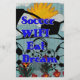 The artwork features the words "Soccer," "WIFI," "Eat," and "Dream" stacked vertically in a bold, blue, slightly stylized font. These words are the central focus and are positioned against a multi-layered and somewhat whimsical background. The background includes outlines of several black and white soccer balls of varying sizes, a radiant yellow sunburst at the top, and colorful floral patterns at the bottom. The overall color palette is a mix of blues, yellows, reds, and greens on a textured, light blue or grey base. The different elements are layered, creating a visually busy and playful composition.