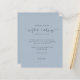 Futura Sra. Bridal Shower Dusty Blue Gracias. Un precio económico menor 4,5" x 5,6" alternativa. Disponible en un ALMACENAMIENTO DE TARJETAS SEMI GLOSS 110 lb que es la opción predeterminada (recomendado para invitaciones), O UN ACCESO DE PAPEL DE LADRILLO DE 80 lb SATIN (ideal para los gabinetes). Los sobres son un extra opcional y son algo más grandes que el tamaño de la tarjeta. La futura señora se encuentra en un sinfín de guiones con el anillo de compromiso y los motivos del corazón y el resto del texto que puede personalizar fácilmente. También puede cambiar el texto y los colores de fondo en ambos lados si lo desea a través de la opción Personalizar adicional.