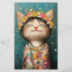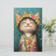 Lámina Gatito feliz, corona de flores, papel de artesanía