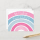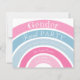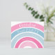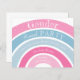 Una linda invitación al Partido de Revelación de Género. El diseño se compone de un arco iris en tonos azules y rosas, con motivos que incluyen manchas, rayas y gotas lacrimógenas. Cada línea está anotada con texto tipográfico que detalla al fiesta. Personalice agregando todos los detalles del evento.
