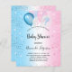 En cuanto al género, podrás ver una ducha de bebé, un fondo de degradado azul y rosa. Decorada con globos purpurina y azul, rosa y blanco. Personalice y agregue el nombre de la futura madre y los detalles del fiesta. El nombre y el texto: Baby Shower se escriben con un guión de estilo con letras a mano