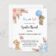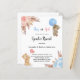 Para una moderna ducha de bebé estilo boho, el sexo revela fiesta. Un fondo blanco. Decorados con oro rosa, flores rosadas y azul claro, rosas, pampas y dos osos de peluche con globos. Personalice y agregue los nombres y detalles del fiesta.