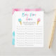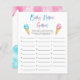 El género de la temática del helado caprichoso revela la carta del fiesta "juego del nombre del bebé" con ilustracion acuarela de helados rosas y azules en conos de gofre. Los textos son editables. Juego perfecto para jugar durante la ducha. Se pide a los invitados que escriban los nombres de los bebés que comienzan con cada alfabeto. ¡Quien termine todos los alfabetos primero gana!