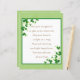 Hermoso papel de libro de recortes con una bendición irlandesa, adornos de shamrock y fondo de textura dorado/verde : Que tus pensamientos estén tan contentos como los shamrock. Que tu corazón sea tan ligero como una canción. Que cada día te traigan buenas horas, que permanezcan contigo todo el año.