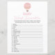 Este juego de repelente de palabras para bebé es perfecto para una ducha de bebé o para rociar un bebé. Este juego de scramble de palabras muestra un globo de aire caliente de color agua rosada y arco de coqueta en la parte posterior. Puede personalizar este diseño haciendo clic en "Personalizar esta plantilla" o si desea cambiar el tipo de letra, los colores o organizar los elementos de diseño de una manera diferente, puede hacer clic en "Editar usando la herramienta de diseño". Clave de respuesta: 1. Diaper 2. Bassinet 3 Frasco 4. Cuna 5. Pacificador 6. Cambio de la tabla 7. Animal relleno 8. Apilador 9. Rubber Ducky 10. Matrícula 11. 12. Fórmula 13. Alto Presidente 14. Móvil 15. Termómetro 16. Niño 17. Leche 18. Booties 19. Una cara 20. Osito de peluche