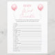 Este juego de repelente de palabras para bebé es perfecto para una ducha de bebé o para rociar un bebé. Este juego de scramble de palabras muestra un globo de acuarela rosa y una linda reverencia. Puede personalizar este diseño haciendo clic en "Personalizar esta plantilla" o si desea cambiar el tipo de letra, los colores o organizar los elementos de diseño de una manera diferente, puede hacer clic en "Editar usando la herramienta de diseño". Clave de respuesta: 1. Diaper 2. Bassinet 3 Frasco 4. Cuna 5. Pacificador 6. Cambio de la tabla 7. Animal relleno 8. Apilador 9. Rubber Ducky 10. Matrícula 11. 12. Fórmula 13. Alto Presidente 14. Móvil 15. Termómetro 16. Niño 17. Leche 18. Booties 19. Una cara 20. Osito de peluche