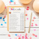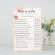 Para obtener más personalizaciones, envíe un correo electrónico a hi.yellowmoonatelier@gmail.com. Perfecto para celebrar a un niño o chica, trae diversión extra a la ducha de su bebé con este juego de adivinación de globos arcoiris bajo ducha del atelier lunar amarillo. Este juego, que se integra con la colección de globos arcoiris de la Luna Amarilla, presenta un colorido diseño acuático de un conejito con orejas disquetas mirando sobre una canasta, rodeado de globos de color arcoiris. Este juego interactivo desafía a los invitados a adivinar si varios artículos o estadísticas relacionados con el bebé están 'terminados' o 'debajo'. ¡El invitado con las respuestas más correctas gana! Asegúrese de conocer las respuestas correctas antes de tiempo, y no olvide tomar un divertido premio para el ganador! Este juego delicioso le añade un toque extra de alegría y emoción a su ducha de bebé. No olvide explorar la colección de Baby Shower de los globos arcoiris de algunos conejitos para obtener artículos más coordinados para completar su celebración.