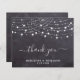 Envíe notas de agradecimiento a sus amigos y familia desde su boda con esta pizarra rústica de pizarra con luces de cuerda gracias a las tarjetas. Personalizar estas tarjetas de agradecimiento boda con tu mensaje personal. Esta boda de pizarra única gracias a las tarjetas hará una impresión duradera, sus invitados, familia y amigos! DERECHOS RESERVADOS © 2020 Judy Burrows, Black Dog Art - Todos los derechos reservados. Gracias a Budget Rustic Chalkboard String Lights