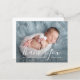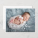 Celebra el nacimiento de un recién nacido con este encantador diseño de Script. El guión le da un aspecto mínimo al mismo tiempo que complementa la linda imagen del bebé en el fondo. Puedes personalizar la imagen del bebé y el texto a tu elección.