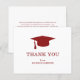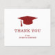Tarjeta de agradecimiento para graduación de presupuesto clásico con un diseño simple y minimalista con una tabla de mortero junto con el nombre del graduado en negrita en burdeos / rojo sobre un fondo blanco. El reverso tiene su mensaje personal o puede eliminar la plantilla si desea escribir a mano su mensaje. Un diseño tradicional con un toque masculino perfecto para un joven graduado.