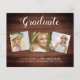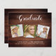 Anuncie su graduación a amigos y familia con estas tarjetas de invitación rústicas de de collage de fotos divertidas y modernas. Personalizar con 3 de tus fotos favoritas de la universidad, y personaliza con el año de graduación, el nombre, la escuela secundaria o la universidad. Personaliza la parte posterior con tu mensaje personal, también puede ser para invitaciones a la graduación. ¡Estas exclusivas tarjetas de graduación de moda y elegante causarán una impresión duradera con la familia, amigos y compañeros de clase! DERECHOS RESERVADOS © 2020 Judy Burrows, Black Dog Art - Todos los derechos reservados. Graduado Rústico De Madera 3 Graduación De Presupuesto Fotográfico