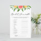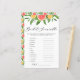 Añade este divertido y festivo juego de ducha de novia en personalizable a tu evento. Cuenta con vegetación acuática, toronja, naranjas y aliento para el bebé. Personalice esta trivia de ducha cítricos de novia agregando sus propios textos. Este juego de ducha con pomelo es perfecto para duchas de novias de verano.