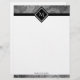 Bordes paisajistas de color gris oscuro y blanco con tu parte inicial en forma de diamante blanco y negro sobre una franja horizontal en negro y gris en el encabezado. Se proporciona otra plantilla para la elección de texto que se muestra justo encima del borde inferior. Simplemente rellene los campos de texto o haga clic en "Personalizar" para ajustar el tipo de letra, el tamaño, el color, la posición o cualquier cambio que desee. Obra de arte y diseño de Karlajkitty
