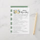 Compra esta tarjeta editable y disfruta de un juego de test de Rhyme de Nursery de alta calidad para tu evento! Baby Shower, ¡Actividades de Revelación de Género! Sage Green Brewery Unisex diseño. RESPUESTAS: 1 - JARDÍN, 2 - RUEDAS DE CURAS, 3 - HOMBRES, 4 - PEPPERS RECOGIDOS, 5 - LLORAR, 6 - MANTENER, 7 - BAKER'S, 8 - NAVIDADES, 9 - TIGER, 10 - MADERA, 11 - KNOCK, 12 - CUPBOARD, 13 - BLOG, 14 MUFFIN MAN, 15 - OVEJA