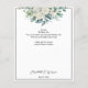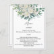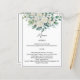 Carta de menú boda de rosas blancas de eucalipto verde.