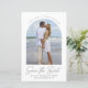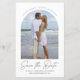 Guardar la Invitación Boda de fecha presupuesto. La pluma ultra delgada moderna se apoderó de un guión casual debajo de la foto enmarcada en arco. Diseño completamente versátil de estilo propio. Ajustar fácilmente el tamaño, los colores, el estilo y la ubicación de todos los elementos. Nota: El texto curvo debería funcionar con la mayoría de los nombres, pero puede hacer ajustes o cambiarlo al texto estándar haciendo clic en "Personalizar más adelante".
