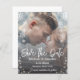 elegante guardar la fecha,moda caligrafía blanca copos de nieve boda foto Invitación