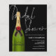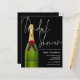 Un precio más bajo de papel alternativo de 4,5" x 5,6". No incluye sobres pero hay una opción para añadirlos si lo desea. Clásico negro para este diseño de diseño con ducha de novia en un estilo escrito a mano con un guión en blanco, y una botella de champán verde a la izquierda con la tipografía superpuesta ligeramente y un fondo negro también al otro lado. Personaliza fácilmente el resto de los detalles. También puede cambiar el texto y los colores de fondo en ambos lados si lo desea a través de la opción Personalizar adicional.