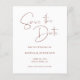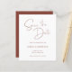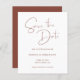 Cree su propia celebración de boda de estilo moderno para guardar las fechas. Un encantador estilo de escritura de mano de línea fina caligrafía "gracias" mensaje de texto contra el blanco en la parte delantera... color de fondo de terracota marrón rojizo oscuro en la parte posterior. Compruebe la variedad de colores y estilos de papel para este moderno diseño minimalista boda. Personalizar el color de fondo de terracota de óxido oscuro para que coincida con la paleta de color boda.
