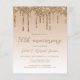 Esta moderna invitación a la fiesta del 50 aniversario de los bodas incluye un purpurina de imitación dorada brillante con un borde de goteo y un fondo sombrío. Las palabras "50º aniversario" y los nombres de la pareja aparecen en un capricho de color dorado, con el resto del texto del personalizable en letra sans serif de color dorado. El mismo diseño de goteo de purpurina dorado aparece en el reverso.