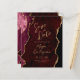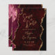 Esta elegante boda, salvo la tarjeta de fecha, presenta una imagen de fondo de una ágata color rojo burdeos adornada con un falso purpurina de oro. El texto del personalizable combina la escritura a mano moderna de color dorado, el copperplate y las tipografías cursivas. El reverso presenta un diseño coordinado de agate de color burdeos y dorado.