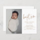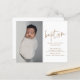 Esta moderna invitación para el bautismo de bebé fotográfico incluye arte de bautismo con escritura caligráfica con letras a mano que se puede mover fácilmente y se puede cambiar el color de, una foto vertical y texto editable. Haga clic en el botón de edición para personalizar de este diseño.