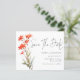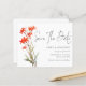 El Guión De Código QR Del Boho Rojo Flores Silvestres De Presupuesto Guarda La Fecha. Un precio más bajo de 4,5 x 5,6" alternativo en un semi brillo de 110 gsm, similar en grosor a una postal. Hay UNA por hoja. Añade tu código QR al sitio web de tu boda o simplemente borra esto si no es necesario. Un diseño floral minimalista con Save The Date en un guión moderno.El resto del texto que puedes personalizar fácilmente. Los colores de texto y fondo se pueden cambiar si se desea a través de la opción personalizar adicional.