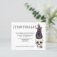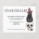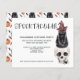 PRESUPUESTO Halloween Spooktacular Black Cat On A Skull y embrujado diseño de texto con una acuarela de gato negro sentado en un cráneo, el gato lleva puesto un gorra de brujas y hay una pequeña araña escalando en el cráneo - invitación del fiesta - presentada con un fondo de patrón de gato y calabaza - una moderna invitación de Ricaso a la fiesta de Halloween