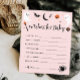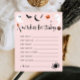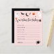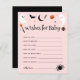 Celebra tu ducha de bebé de Halloween con este adorable juego de "Deseos para el Bebé" con un tema espeluznante de color rosa. Perfecto para las ideas de la ducha de bebé de halloween, esta actividad dulce se adapta a las ideas de la ducha de bebé con temática de halloween y a las pequeñas ideas de la ducha de bebé boo. Tanto si planeas una ducha de bebé espeluznante como si estás explorando las ideas de una ducha de bebé brujas, esta tarjeta es un placer adorable. Un poco de boo está a punto de llegar, ¡y se está preparando un bebé! Ideal para un bebé es preparar ideas para el baño de bebés, el bebé está preparando ideas para el baño y para el baño de bebés.